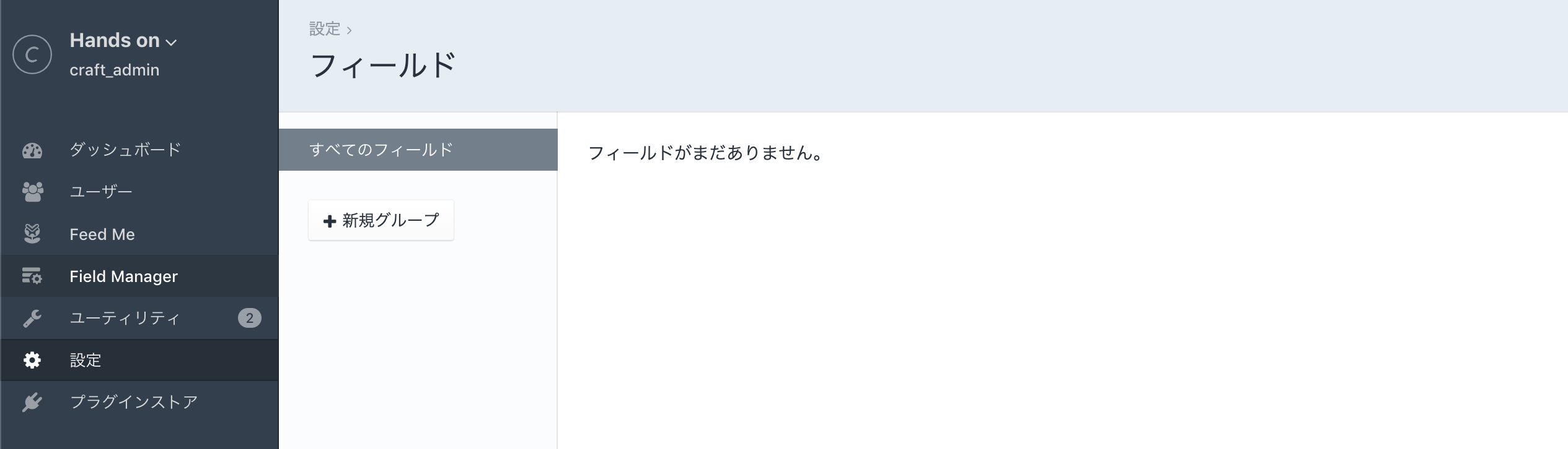 フィールドは必ず何かしらのグループに所属する必要があるため、フィールドの新規作成ボタンが出なくなった時はまずグループを作成しましょう。